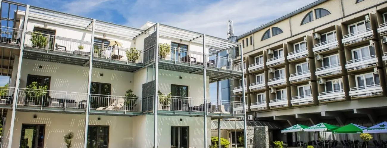 A festői tóparti környezetben található szálloda 130 fő befogadására képes. A szállodában vendégeinket két épületben 24 standard kétágyas erkélyes szoba, 12 db deluxe kétágyas szoba, 6 két hálószobás két erkélyes négyágyas családi szoba, 3 két hálószobás két erkélyes négyágyas családi deluxe szoba, 3 prémium kategóriás kétágyas nagy méretű berendezett erkéllyel felszerelt superior szoba és 3 exkluzív erkélyes deluxe lakosztály várja. A SZOBÁK ÉS LAKOSZTÁLYOK NEM DOHÁNYZÓAK. A szálloda gyönyörű parkjában élmény a kikapcsolódás a kültéri medence napozóteraszán, a kertben felállított óriás sakk társaságában, a Street Workout parkban.