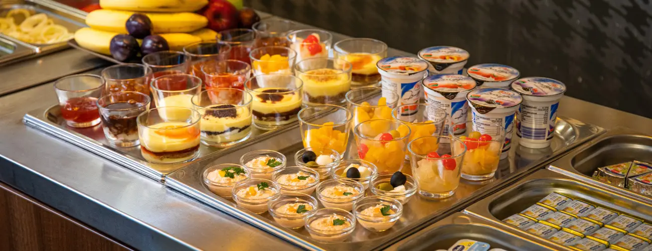 A szállás félpanzióval vehető igénybe. A vacsora bőséges svédasztalos, illetve alacsony szállóvendég létszám esetén 2 fogásos menüválasztást biztosítanak.