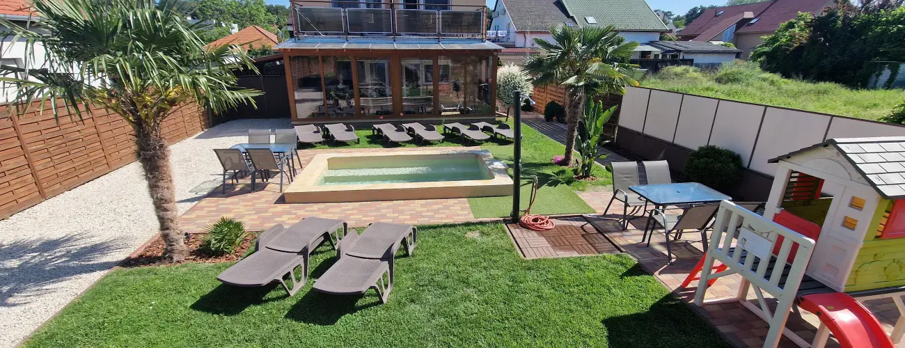 szabadtéri úszómedence • napozóterasz • ülőmedence