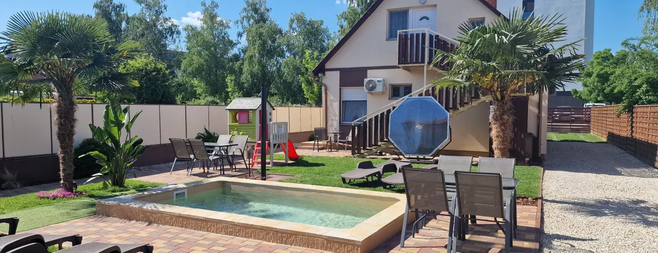 A kikapcsolódni vágyókat a napozó udvarban egy kis hűsítő medence várja.